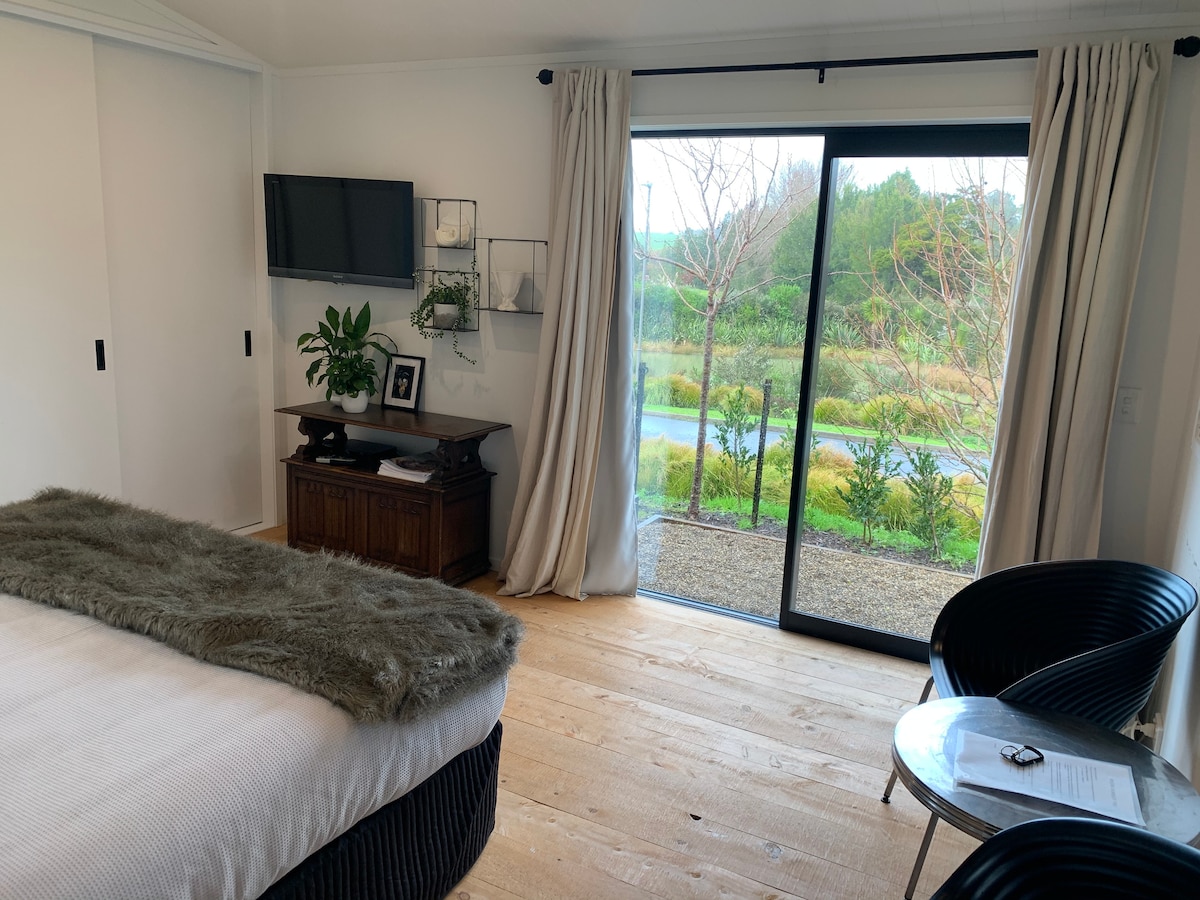 Escape and relax at Matakana By The River, a new guesthouse that overlooks the Matakana River and is located behind the Matakana War Memorial. The property's iconic white gate leads to shops, cinema, bars, restaurants, cafes and the Saturday Farmer’s Market - all within short walking distance. Please note that we accommodate adults eighteen years and over only.