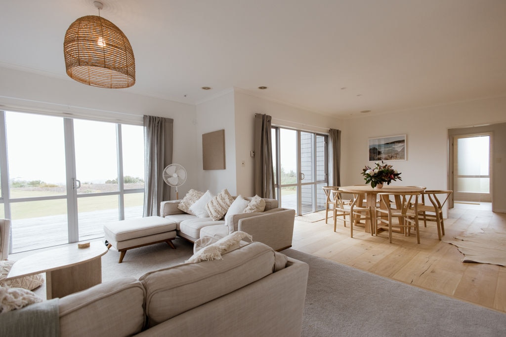 Enjoy a sunny and stylish experience at this centrally located townhouse in Matakana Village. Bright and sunsplashed with a spacious kitchen, indoor and outdoor living room, and a gorgeous bedroom upstairs with an AC / heat pump, the villa is across from 8 Wired Brewery and steps from the Farmer's Market, cinemas, and other Matakana shops and eateries.