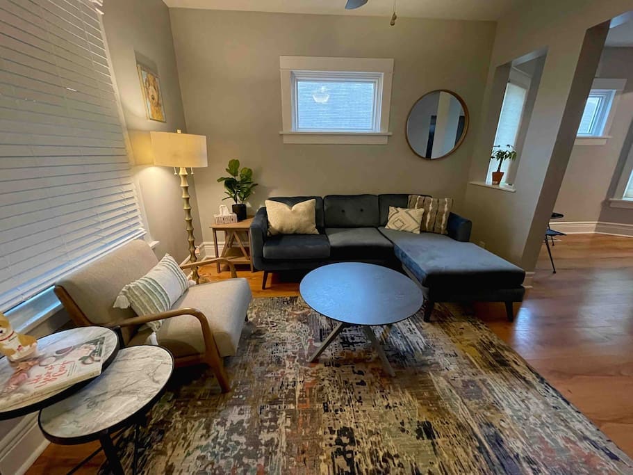 A warm, quiet, and cozy feel in this refurbished old home! With quick access to I-80, your party is within minutes of downtown, the Omaha Henry Doorly Zoo and many other attractions. Enjoy many amenities including a pack-n-play crib / high chair for the kids, gigablast internet, an equipped kitchen, a large flatscreen TV, and paid streaming services to go with it. Both families and individuals will find this place comfortable, cozy, and spacious. -Snacks, seltzers, and coffee in the kitchen!