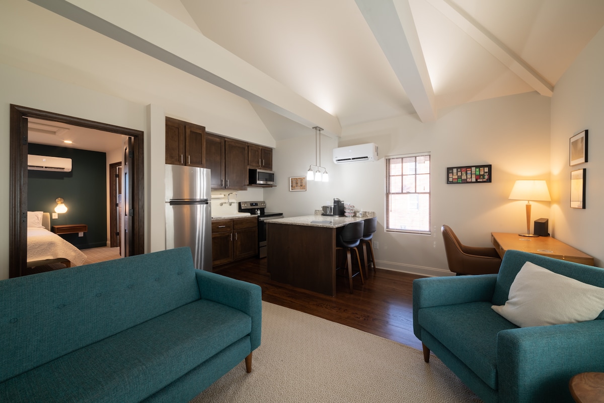 Our Little Boho studio on the top floor of a quiet 4-plex is the ultimate in modern comfort! Every detail is designed with luxury in mind, including a custom kitchen and bath, velvet drapery, and fine finishes. Relax in style with a plush king bed, full-size sleeper sofa, well-equipped kitchen, W/D, patio, and private parking. We are nestled in Little Bohemia, close to downtown, CWS, & the zoo. Enhanced cleaning and self-check-in ensure you're in good hands. Book now for an unforgettable stay!