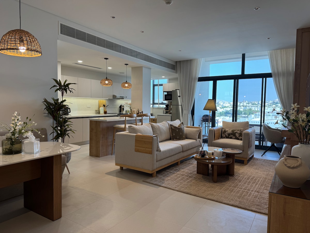 Enjoy brand new apartment in the most prestigious area in Muscat. Near to few 5 star hotels and yet fraction of the rent to 5 star hotels. Very quite yet few steps to the beach and a lot of coffee shops, restaurants and coffee shops.  It is near most of tourist attractions. -Opera house, W hotel and Mandarin hotel is within walking distance -another chain of restaurants, coffee shop, famous Darcy kitchen for breakfast at Oasis by the sea is within walking distance along the beach
