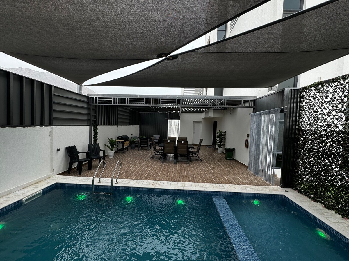 Relax in this calm and elegant accommodation. Perfect for couples and for having a great time. There’s a large pool with a small pool for relaxing, along with a designated grilling area. Wi-Fi is available, and there's a smart TV. The kitchen is equipped with a microwave, stove, fridge, and dining utensils. Enjoy your stay!