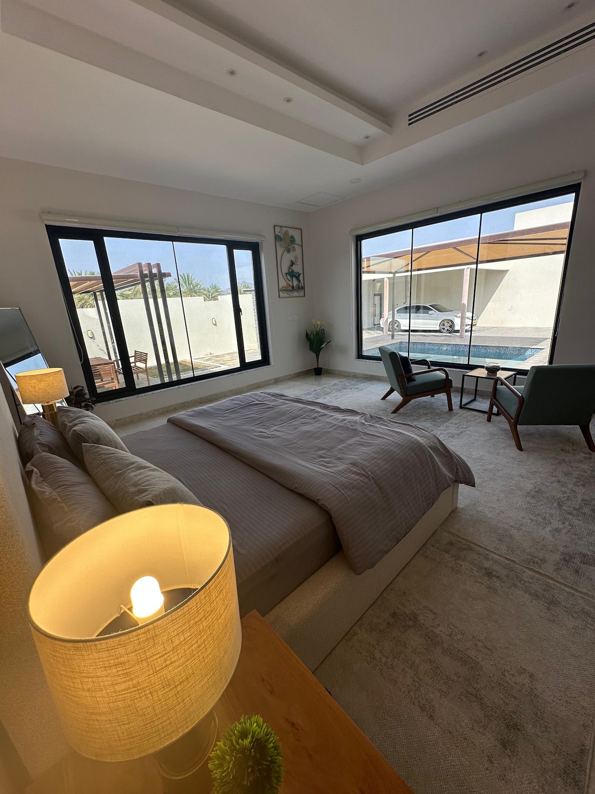انعم بالهدوء والاسترخاء بصحبة عائلتك في هذا المسكن الهادئ. بركة سباحه للكبار وأخرى للأطفال مع جاكوزي بالغرفة الرئسيه بعيد عن صخب المدينه يوجد مسافه 20 دقيقه بالسياره عن البحر يوجد عامل ممكن يساعد في كل شي مدخله بعيد عن مدخل الفيلا
