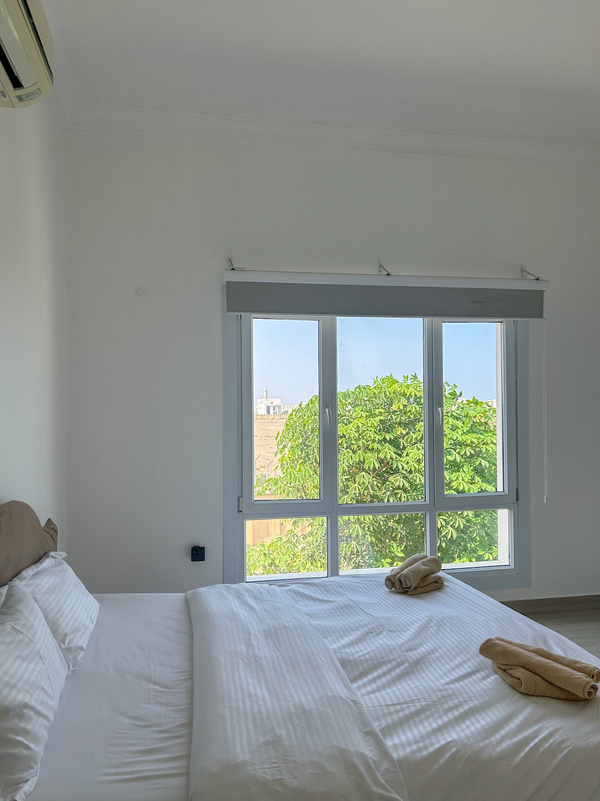 2.5km away from the beach a 5minutes driving,nearby coffee shops and restaurants.near to souk seeb(seeb market) 2.7km away.24hour security surveillance.WIFI is available in the house and a smart tv.A two parking area.a very great place to stay with a calm neighborhood.
