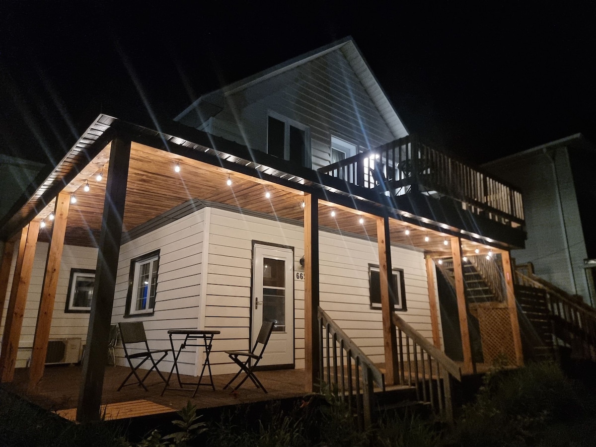 Kick back and relax in this calm, stylish 700 square feet built in 2021, that can accommodate 4 people. Expansive lake view from deck and outdoor patio cozy chairs overlooking the lake. Everything you need to make yourself feel at home. GST and PST included in the price per night! Self check-in with keypad. Free cancellation if done 5 days before the arrival date. Committed to enhanced clean.