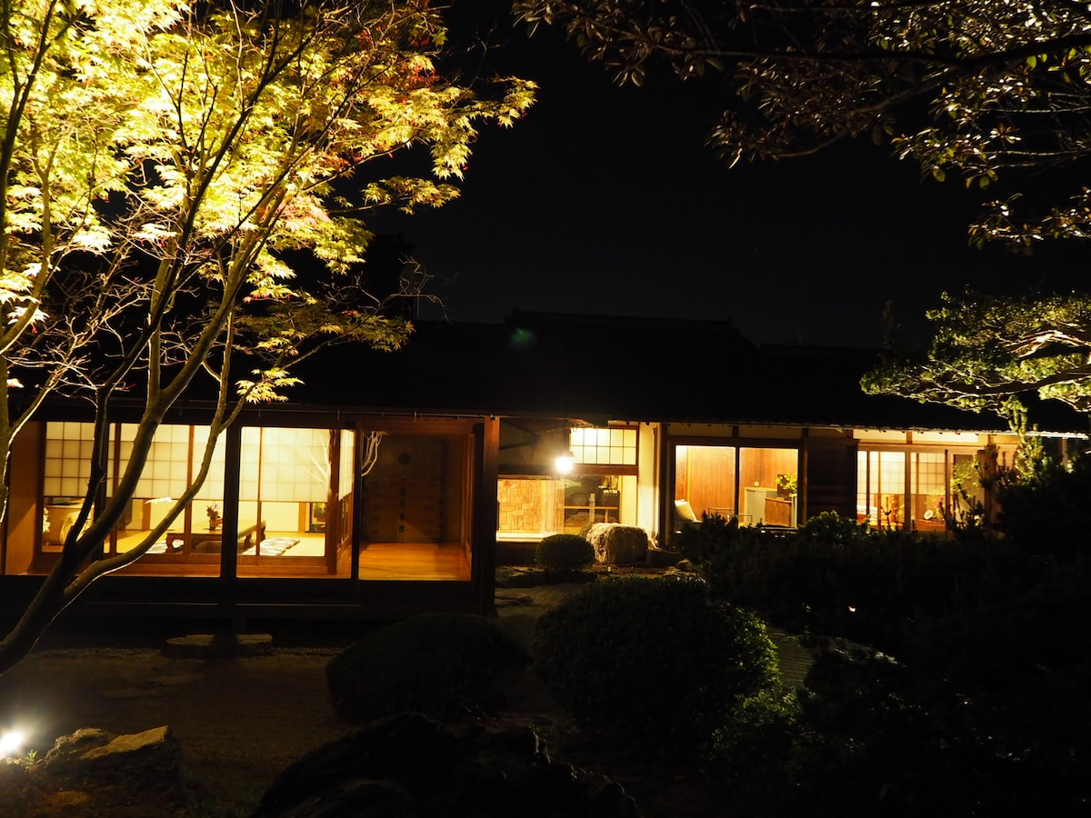 自然豊かな耳納連山の麓!!! 総敷地面積400坪の広さを誇る宿、宿屋昭! 日本庭園が330坪・敷地面積70坪と贅沢な1組限定貸切宿! ※家族旅行・グループ旅行・女子会・イベント事に、ぴったりです! 日本庭園には、枯山水や水が流れる滝口を見ることが出来ます。 庭には、五葉松・梅の木・紅葉・ツツジ・ナンテンなどがあります。 隣に、1972年創業の魚国(飲食店)があり、 BBQ場も利用出来ます! 自動販売機も設置しております。 魚国には、鰻・鯉(鯉は、事前予約が必要になります。)料理の他に、もつ鍋・水炊き・地鶏・馬刺し・魚の刺身などのメニュー豊富なお店です。 見て・食べて・飲んで・楽しい!! 注意事項としては、中心部からは少し離れておりますので、お車でのお越しがオススメです。