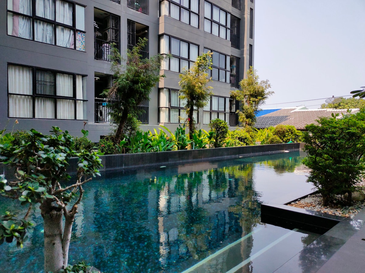 Ideo Mobi -Sukhumvit81 (take 30 mins from Suvarnabhumi Airport) 22sq.m, Free Wi-Fi, Swimming pool and Gym. You can see garden and lovely swimming pool. 1 min. walk to BTS(Onnut Station), easy to getting around.