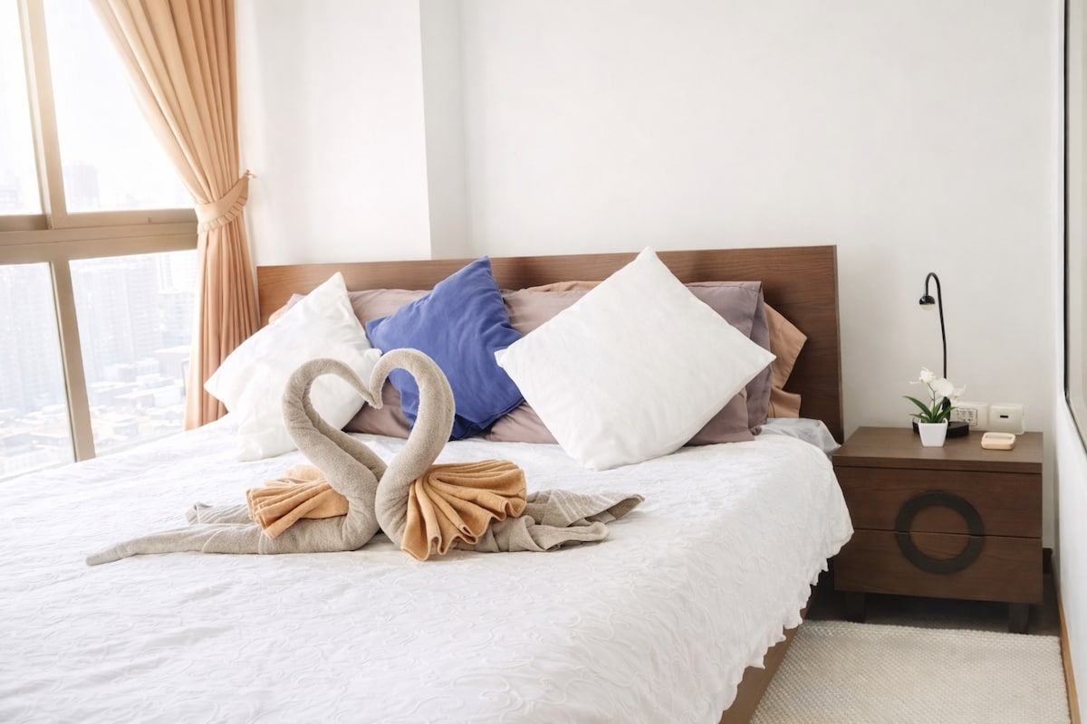 欢迎您! 所有客房均为我个人持有物业,非转租房东,您可以放心自身的安全及隐私。 本公寓为24小时安保豪华高端智能住宅,交通极为便捷,所处素坤逸繁华闹市区。 套内面积47平米,可供2-3人居住,配备独立卫生间及厨房、阳台,空间宽敞。 虽处繁华闹市,但内外全天均极其安静。 房间内配备了全套高端家用电器及相关必需品,独家配备1000兆高速宽带。 你可以自助使用房间内的所有设备及用品,并免费享用公寓顶层的摩天楼无边泳池、健身房、屋顶花园。 所有客房的配置及装饰均完全统一,并由高端专业家政人员负责清洁。