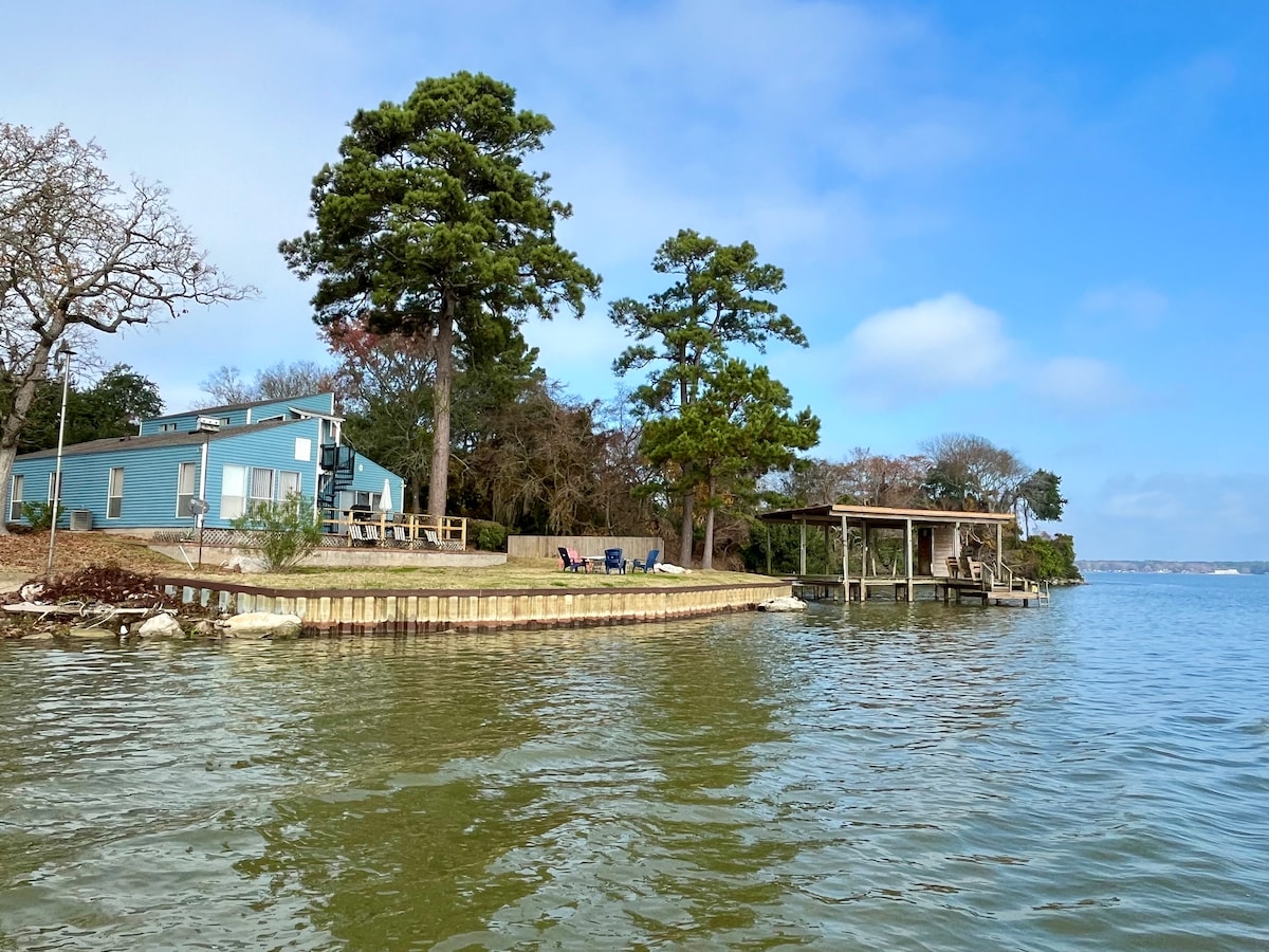 Spacious, 3 bedrooms, 2 baths, located on large water front acreage with private boat ramp and protective cove on beautiful Lake Livingston perfect for kayaking and canoeing and boating and fishing a short boat ride to Goat Island where there are sandy beaches for excellent swimming. Property has beautiful shade trees perfect for outdoor activities we have volleyball, horseshoes, bean bag toss, tetherball, and washer toss. House has Jacuzzi tub in master bathroom. Ramp & Dock shared with cabin