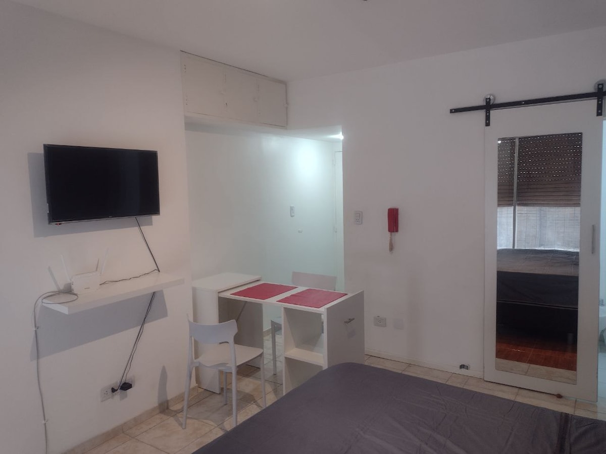 Beautiful brand new studio, fully furnished with excellent quality equipment -TV 32' with cable/Netflix, WIFI 100 MB, A/C hot-cold, King Size bed, desk, full kitchen, -in a Hotel style building with 24 Hs security, swimming pool, Gym, laundry. Located in the heart of Palermo Soho: 200 mts. from subway D/Plaza Italia (Santa Fe Av.), close to stores, bars, restaurants, shopping malls, parks, museums and with easy access to downtown and many touristic spots!