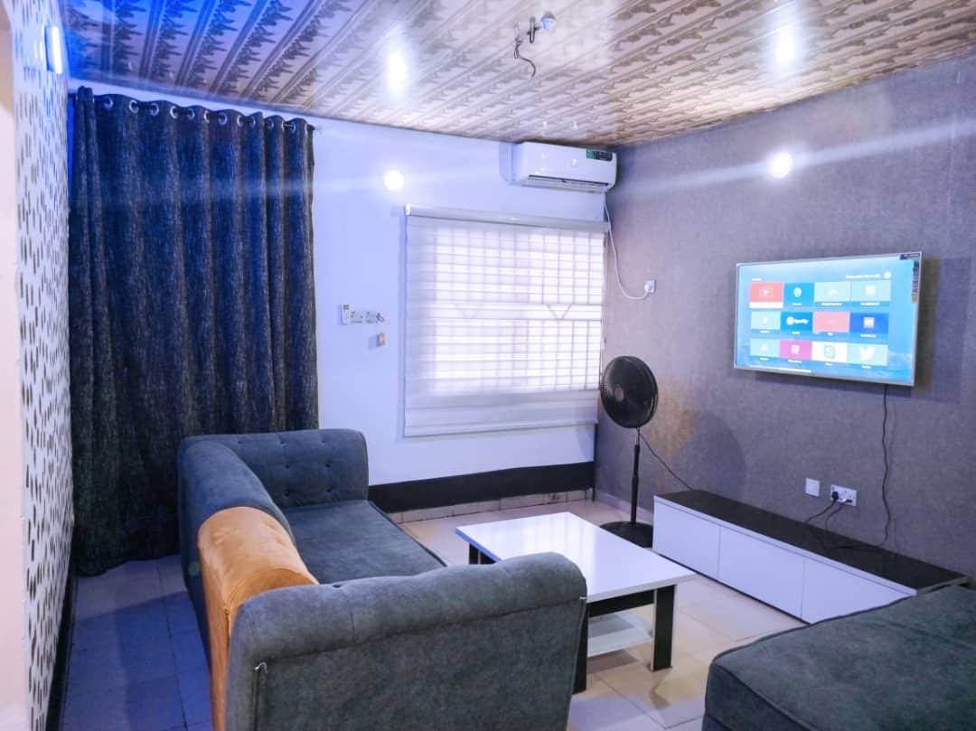 Discover the perfect blend of comfort and luxury in the heart of Benin city. Whether you’re seeking a relaxing staycation, a business productive trip or a quick weekend getaway, we got you covered. We are 10 minute away from kada plaza, shoprite, market place and winners chapter church at Sapele road. We offer airport pick ups on request. We have fully equipped kitchens for self catering, 24 hours power supply, housekeeping service, 24/7 security, outdoor bar. Smart TVs for live streaming
