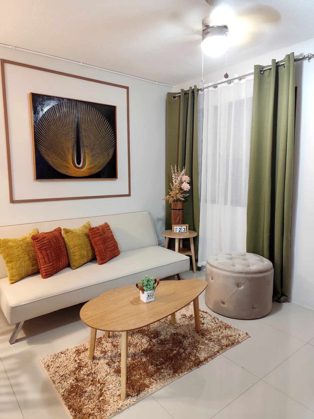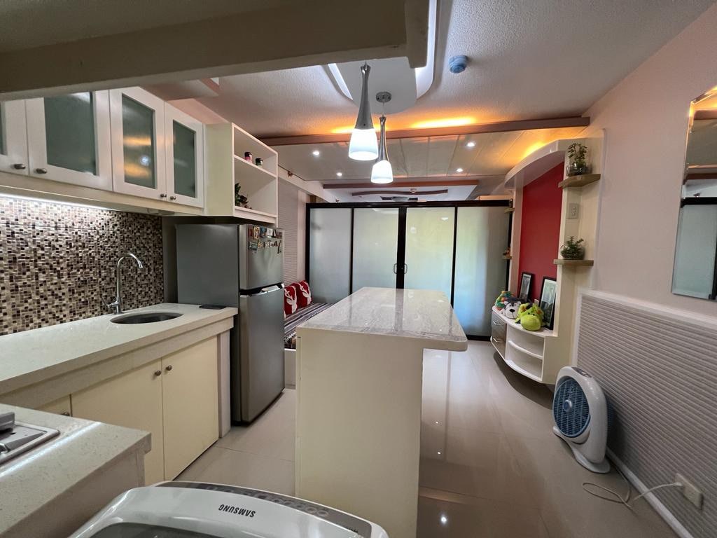 - Across SM City Mall (cinema, supermarket, dept. store, cafes, Anytime Fitness) - 2 Bedrooms with Patios, lush view. - 1 Queen Bed, 1 Full Bed - Up to 1 Extra Mattresses available upon request (Advance Notice pls) - Free Swim Pool Access for 4 Persons (P200/person for excess) (Advance Notice pls) (Pool not available on Mondays) - Pay Parking Available (P200/night. Advance Notice please) - Broadband Wifi - Kitchen - Washing Machine - Self-Check in - Check in: 3PM - Check out: 11AM