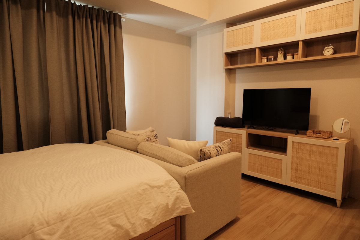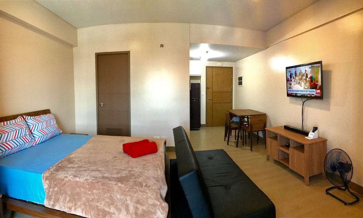 For business or holiday travelers looking for an alternative to hotel but still with a top-class hotel feel. The studio is located just across NAIA Terminal 3 and can be reached by a short walk from the airport, partly through an air-conditioned footbridge. Within short walking distance from the studio, you will find restaurants, shopping, service, casinos and bars with live music entertainment. As a guest, you'll have free access to a large outdoor pool, a 55'' Smart TV and Wi-Fi 100 Mbps.