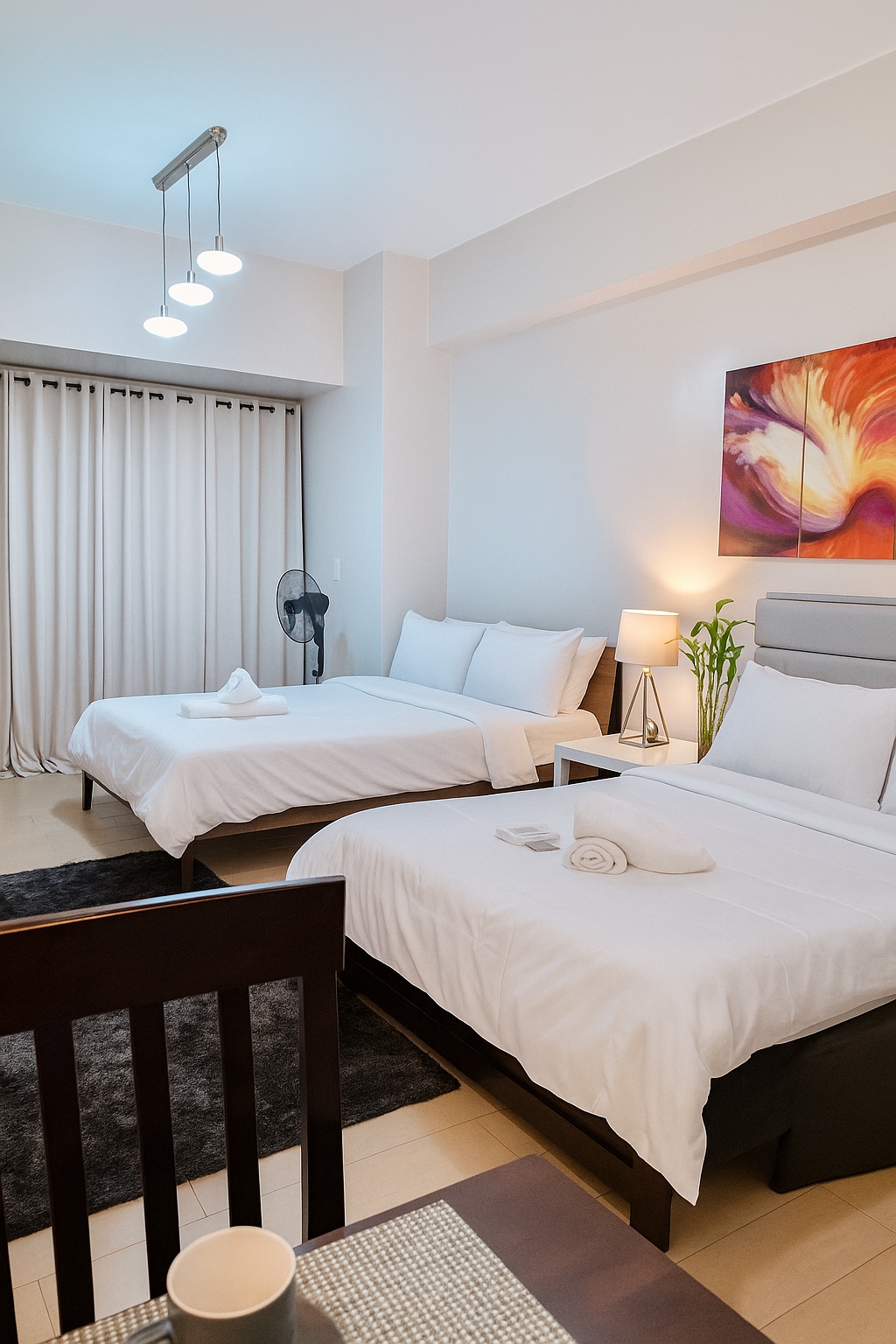For business or holiday travelers looking for an alternative to hotel but still with a top-class hotel feel. The studio is located just across NAIA Terminal 3 and can be reached by a short walk from the airport, partly through an air-conditioned footbridge. Within short walking distance from the studio, you will find restaurants, shopping, service, casinos and bars with live music entertainment. As a guest, you'll have free access to a large outdoor pool, a 55'' Smart TV and Wi-Fi 100 Mbps.