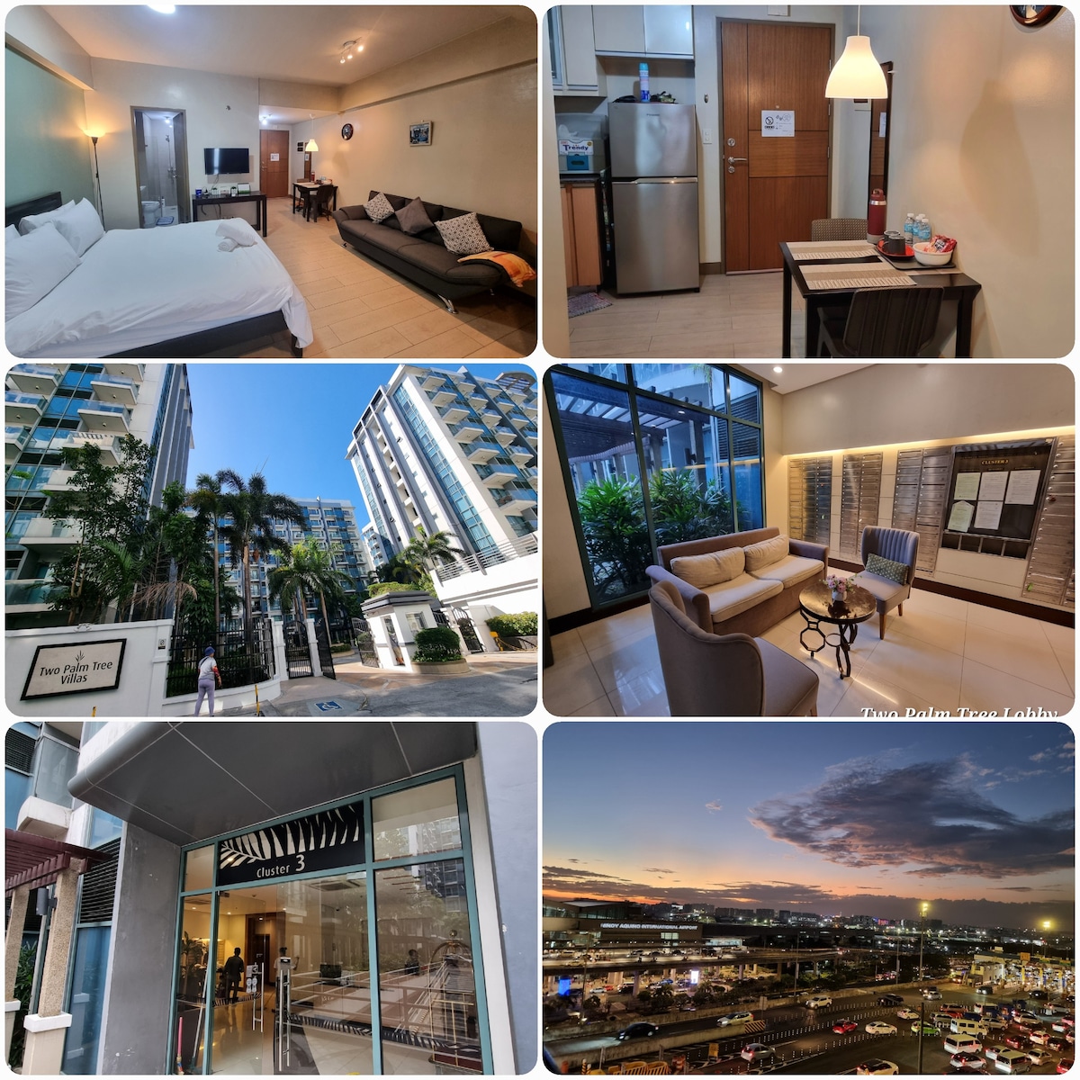 [click Show More for more info.] Two Palm Tree Villas is located across NAIA Terminal 3. Fully-furnished condo studio unit (31sqm), secured and centrally-located place: ● 55inch SmartTV (Netflix & YouTube Premium) ● Dual Internet Provider Setup ● Have space to pack luggage ● 4Mins walk fr/to St. Therese Church ● 5Mins walk fr/to Runway Manila bridge-Terminal 3 ● 8Mins walk fr/to Metro Supermarket ● 8Mins walk fr/to Resorts World/Newport Mall ● 10-15Mins drive fr/to Terminal 1, 2 & 4