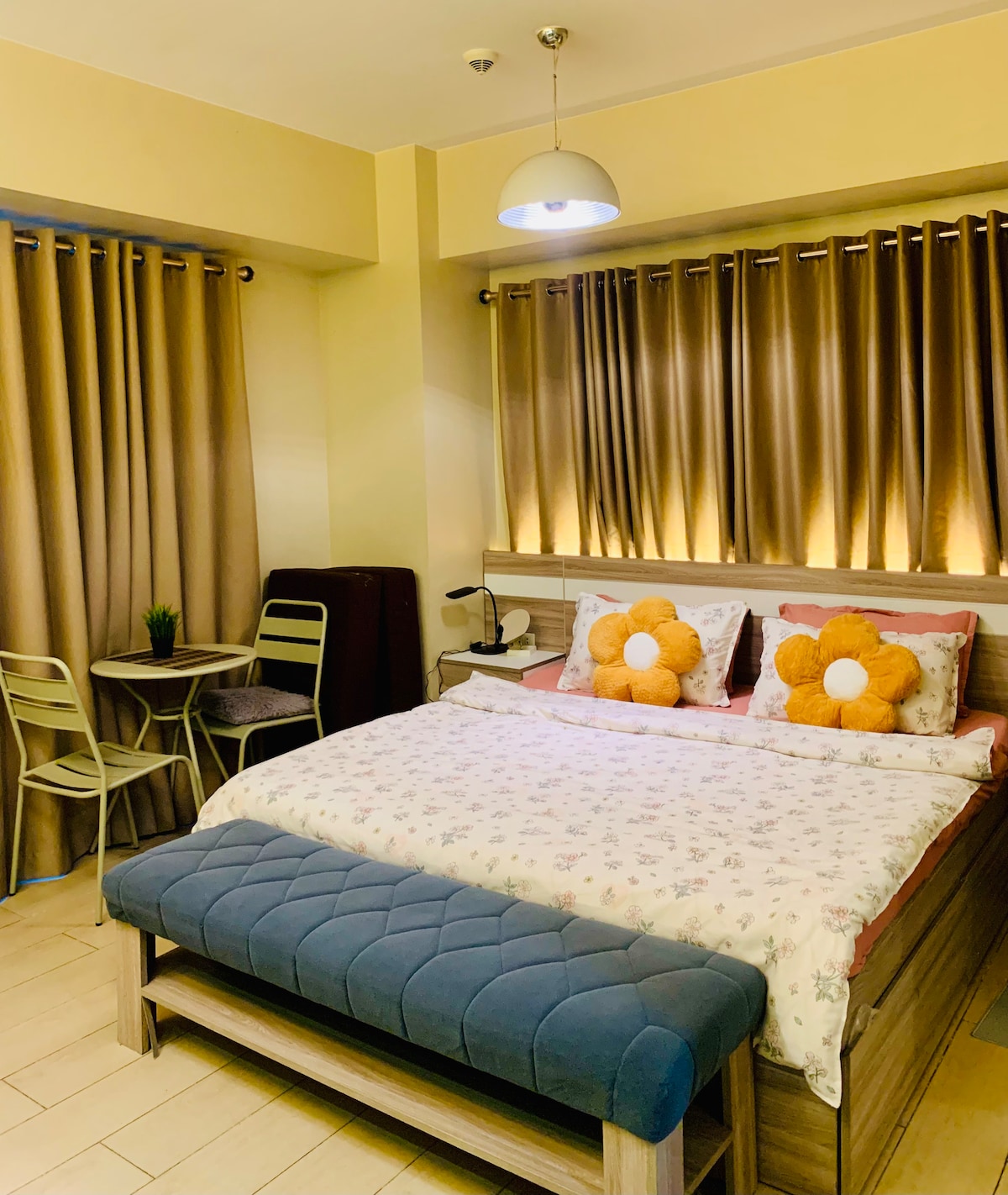 Cozy corner studio unit just 5 min away from NAIA Terminal 3 and Runway Manila. Enjoy a bright space with an airport view, comfy bed, smart TV with free Netflix, and fast WiFi. Guests also have free access to the pool, gym, and playground, making it perfect for layovers, quick getaways, or city stays.