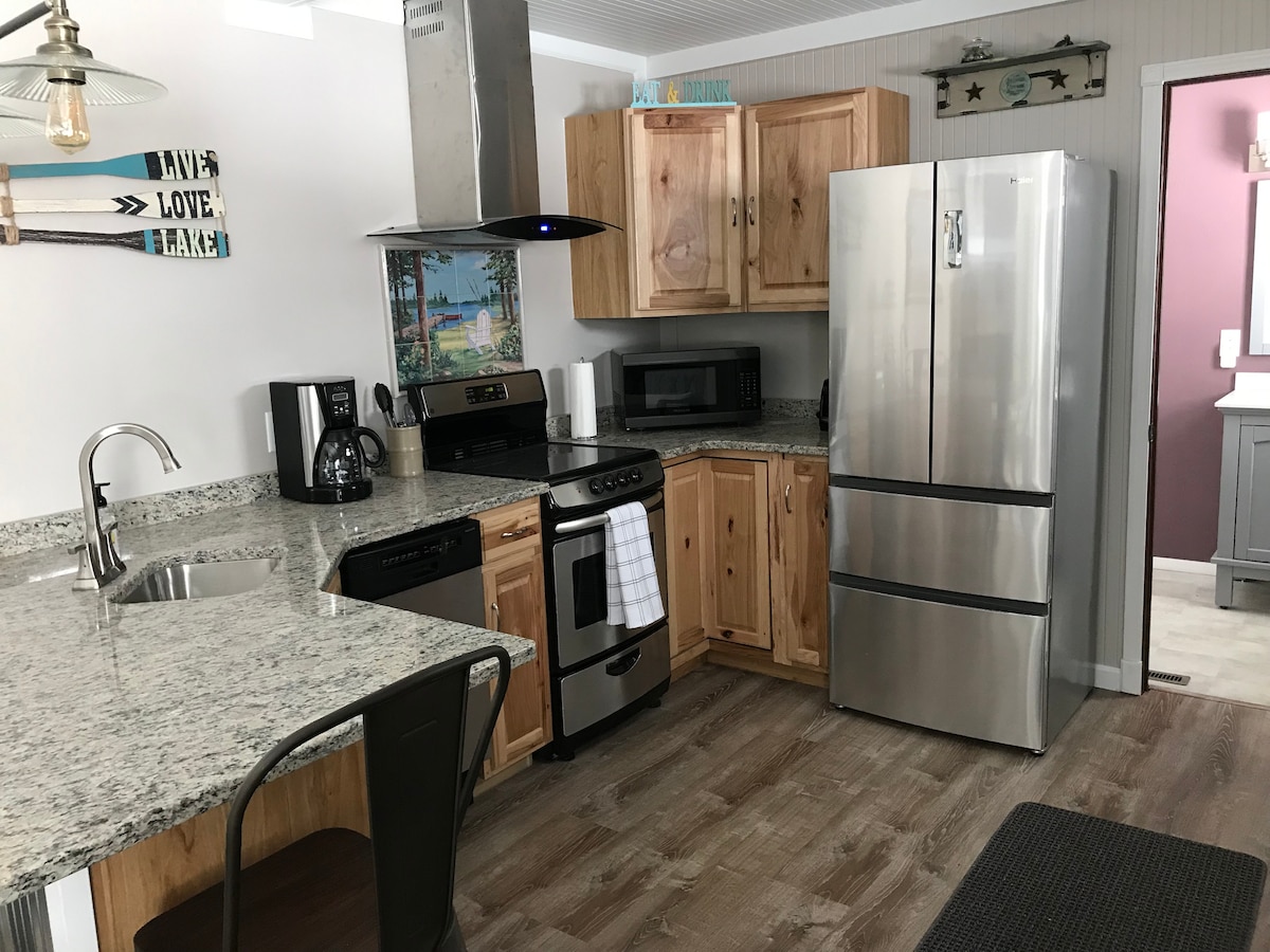 The lake is ready for your adventures! Relax by the large firepit (firewood included), large well-equipped kitchen, 2 gas fireplaces, pick up ATV/snowmobile trails at end of road, close to biking/hiking trails & parks. Downhill Ski at Granite Peak in 40-minutes. Outdoor activities are endless no matter what season you visit!