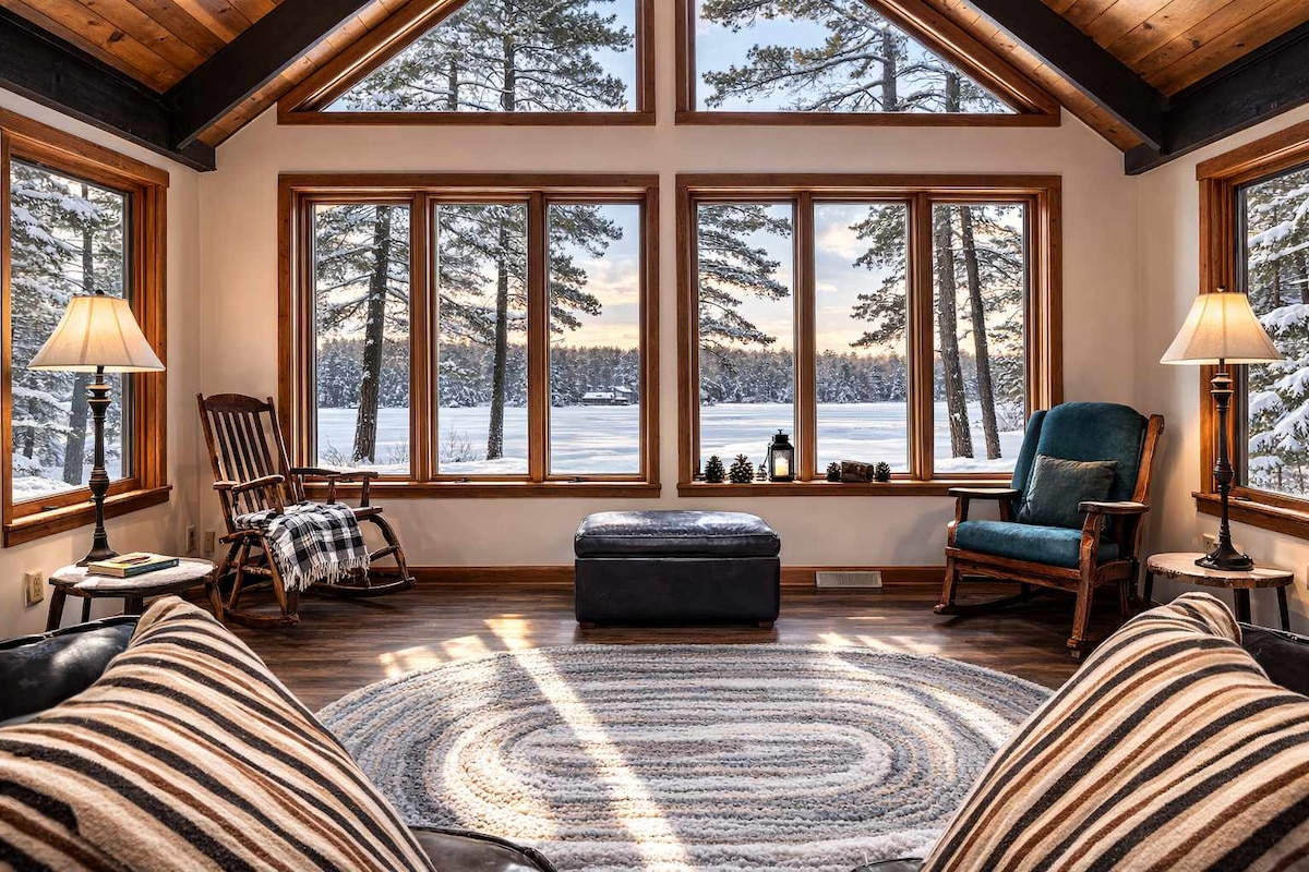 The Aqua Aire Retreat is the closest and most convenient lodging to all the major activities taking place in downtown Minocqua. Enjoy sunset views from our fully renovated and stylish home is located in the out lot of a popular inn, directly across from the always buzzing Torpy Park, and a stone's throw from the shopping and bar district. The Park hosts Minocqua's only public beach, all town festivals and fairs, tennis and pickleball courts, and a children's playground.