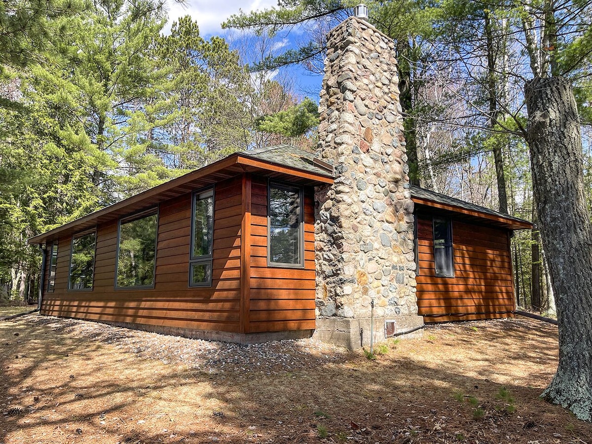 When you think Northern WI cabin stay, this is exactly what they should be. Small 700 square foot cabin sitting on the Moen Lake Chain just a few miles east of Rhinelander. Easy access via blacktop road that takes you right to the place. It offers 56 ft of water frontage. A small public boat landing right in front, makes it easy to get on and off the water. A new dock to tie it up for the evening on those summer stays, and drive out (at own risk) on the ice for those winter months.