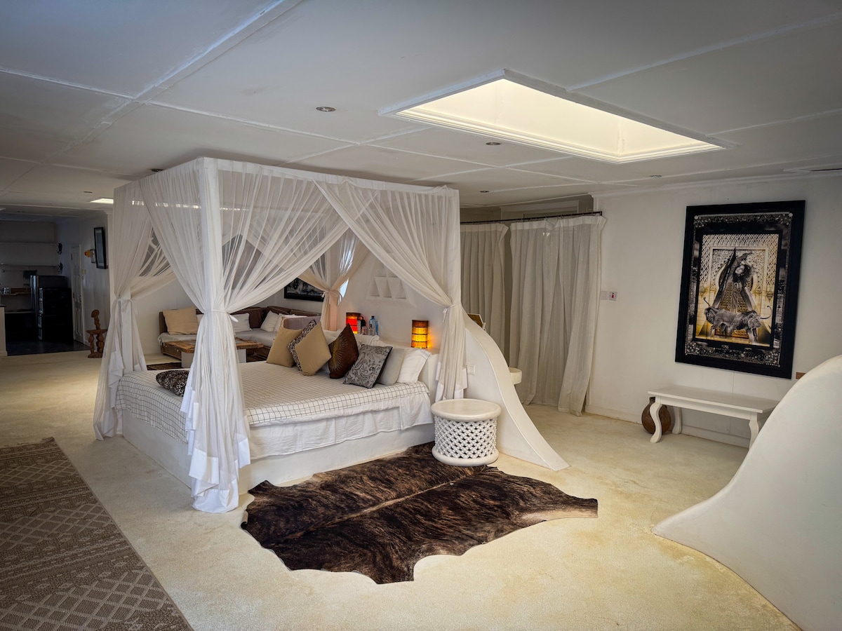 Discover a rare cottage hideaway in Karen, Langata, adorned with Kenyan art and African treasures. Cozy and inviting, it features a fireplace in the master bedroom and a fully equipped kitchen. Just a short walk to the Giraffe Centre, this unique, romantic retreat is ideal for couples, professionals, or friends seeking an intimate piece of paradise in Nairobi.