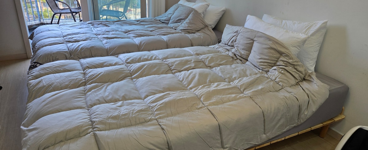 🌅 Stay with Sunset & Ocean View 🌙 🎨 A cozy space designed by a branding designer. ✈️ Only 18 minutes from the airport. 🚶 Close to cafés, seafood restaurants, and seaside walking trails. A perfect place to relax and enjoy your trip. 🏠 Highlights ✔️ Netflix, washing machine, and full kitchen ✔️ Terrace with a beautiful sunset and ocean view ✔️ Clean and stylish room ✔️ Walk to cafés, sashimi spots, and clam BBQ 📍 Nearby Attractions ✔️ Paradise City ✔️ Inspire Arena ✔️ BMW Driving Center