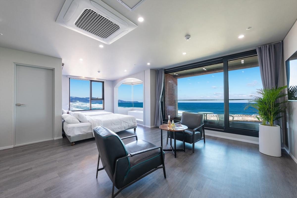 ※Please make a reservation if you would like to quietly heal away from everyday life※ ☆All types of bedding are sterilized at high temperature in a dryer after washing.☆ 🌼 Lie in bed and fall asleep with the sound of waves Enjoy the sunrise with your morning coffee in the living room ⛱️You can stand on the balcony where you can hear the sound of waves and enjoy the ocean view with the blue East Sea unfolding beneath your feet ^^ I hope you have a great time with my apartment 😄