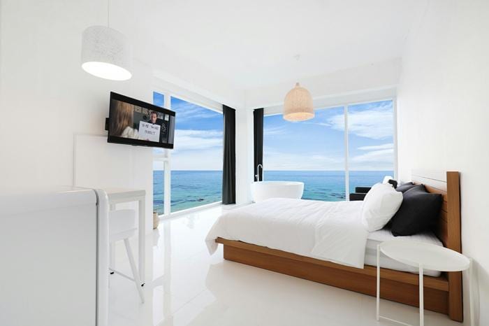 안녕하세요. 저희는 다양한 휴식 공간을 연구하고 제공하는 Onda입니다. 이 곳에서 머무르실 모든 분들께서 편안하고 행복한 시간을 보내시길 바랍니다. [숙소 소개] 탁 트인 동해바다를 바라보며 마음의 위로를 받는 곳. 마치 동화 속으로 들어온 듯한 환상에 빠져들게 하는 바다와 넓고 깨끗한 객실에서 사랑하는 사람과 힐링이 되는 시간이 되었으면 좋겠습니다. [객실 유형] 거실(퀸1)+주방+복층공간(퀸1)+화장실1 *침구는 인원에 맞게 제공됩니다.
