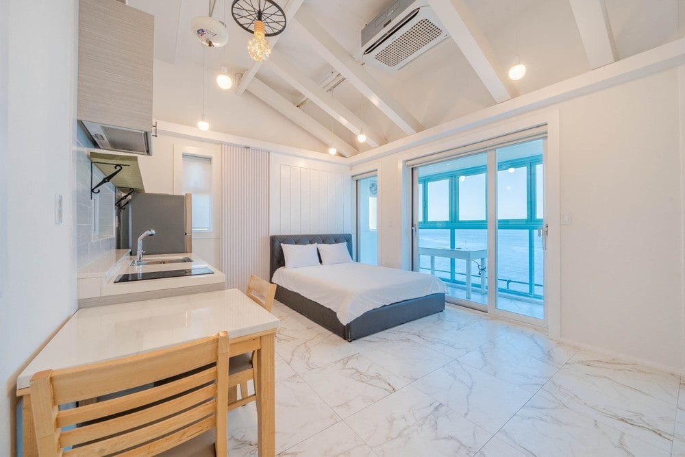 차분하면서도 스타일이 살아 있는 숙소에서 편안한 휴식을 즐기세요. 모던하고 유니크한 공간, 높은 천고, 탁 트인 통창뷰 편안하고 쾌적한 바닷바람도 쉬어가는 파밀리아입니다. 퀸 침대 2, 1인용 소파, 방2. 독립된 주방, 거실 등으로 여럿이 함께 사용해도 충분한 공간입니다. 조용히 쉬고 싶은 힐링장소 업무용 워케이션으로도 추천드립니다. 일주일이상 한달살기도 가능한 숙소입니다.