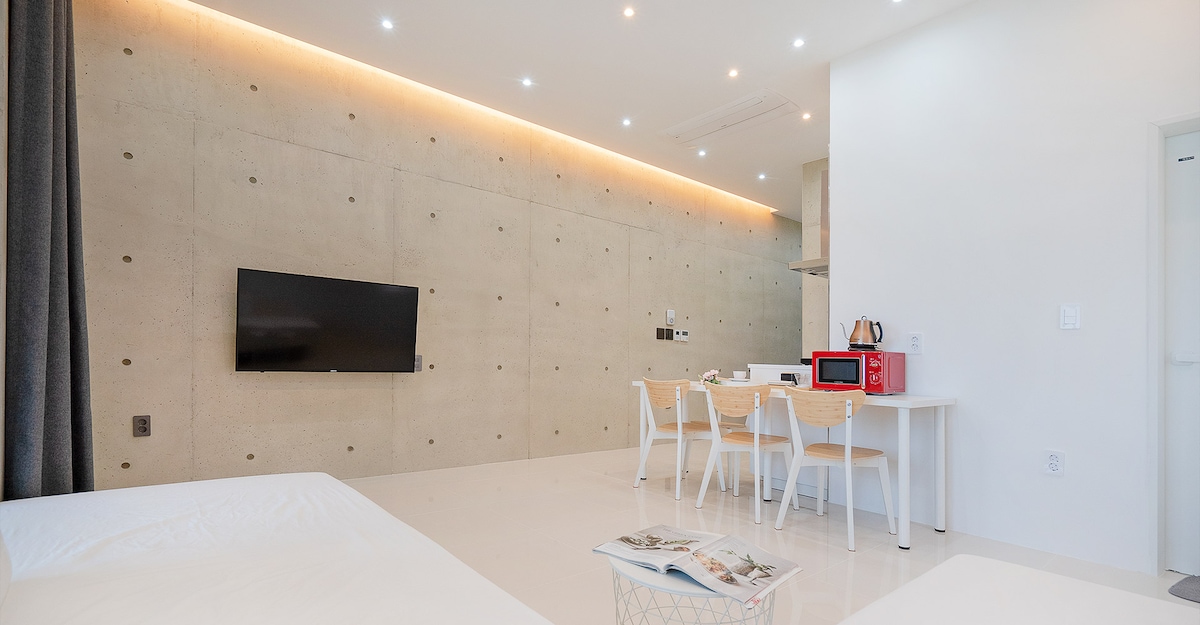 德浦海滩。 环保欧洲市场 步行1分钟到大海。 2个房间 1个卫生间 자쿠지 最多8人