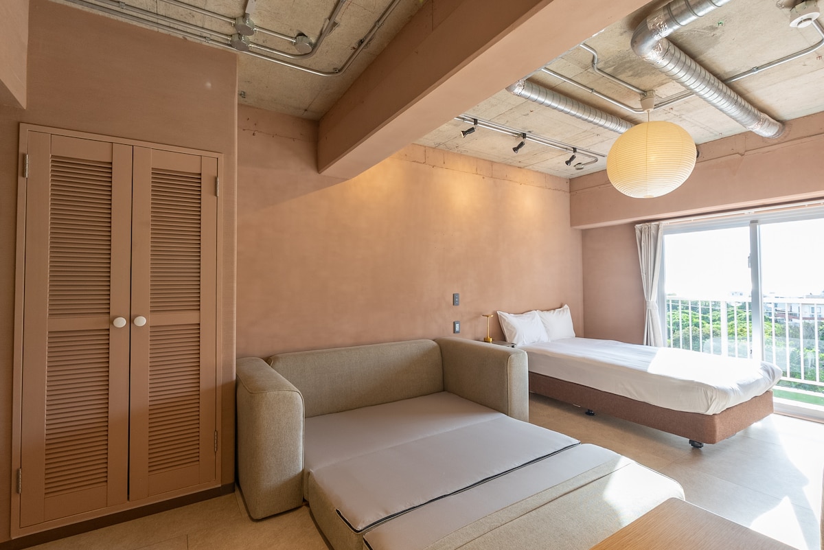 【海景】热门海滩、便利店、餐厅步行范围/免费无线网络/现代单间公寓