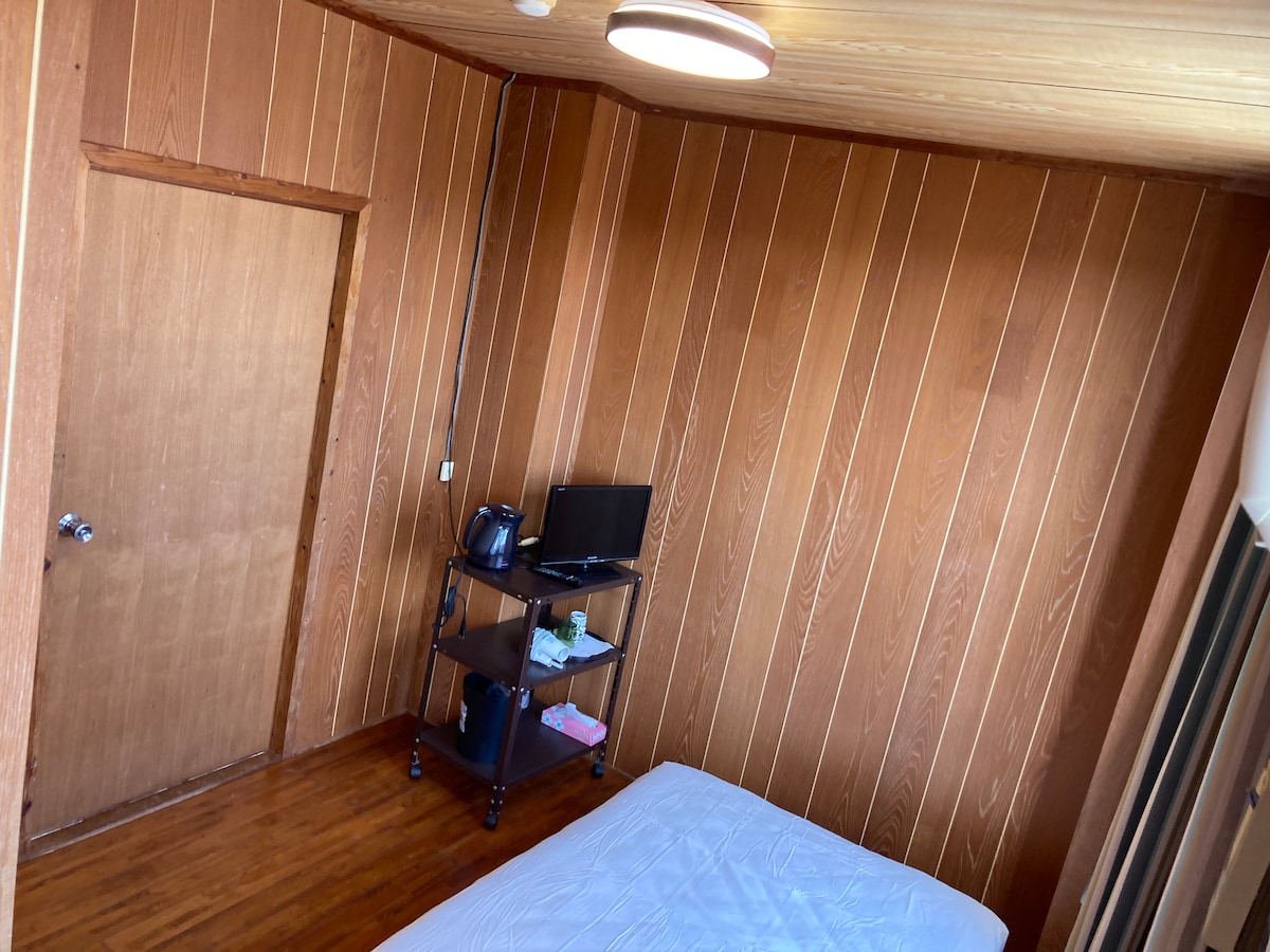 This is a one-room apartment located in a popular resort area. The rooms on the top floor offer a panoramic view of the sea and cityscape of Onna Village. Convenience stores and the beach are also within walking distance, making it a very convenient location. For washing and drying, please use the shared laundry room on the second floor of the building. There is no kitchen. We will show you the free parking lot. I run an Okinawan restaurant in my neighborhood. Please feel free to contact us.