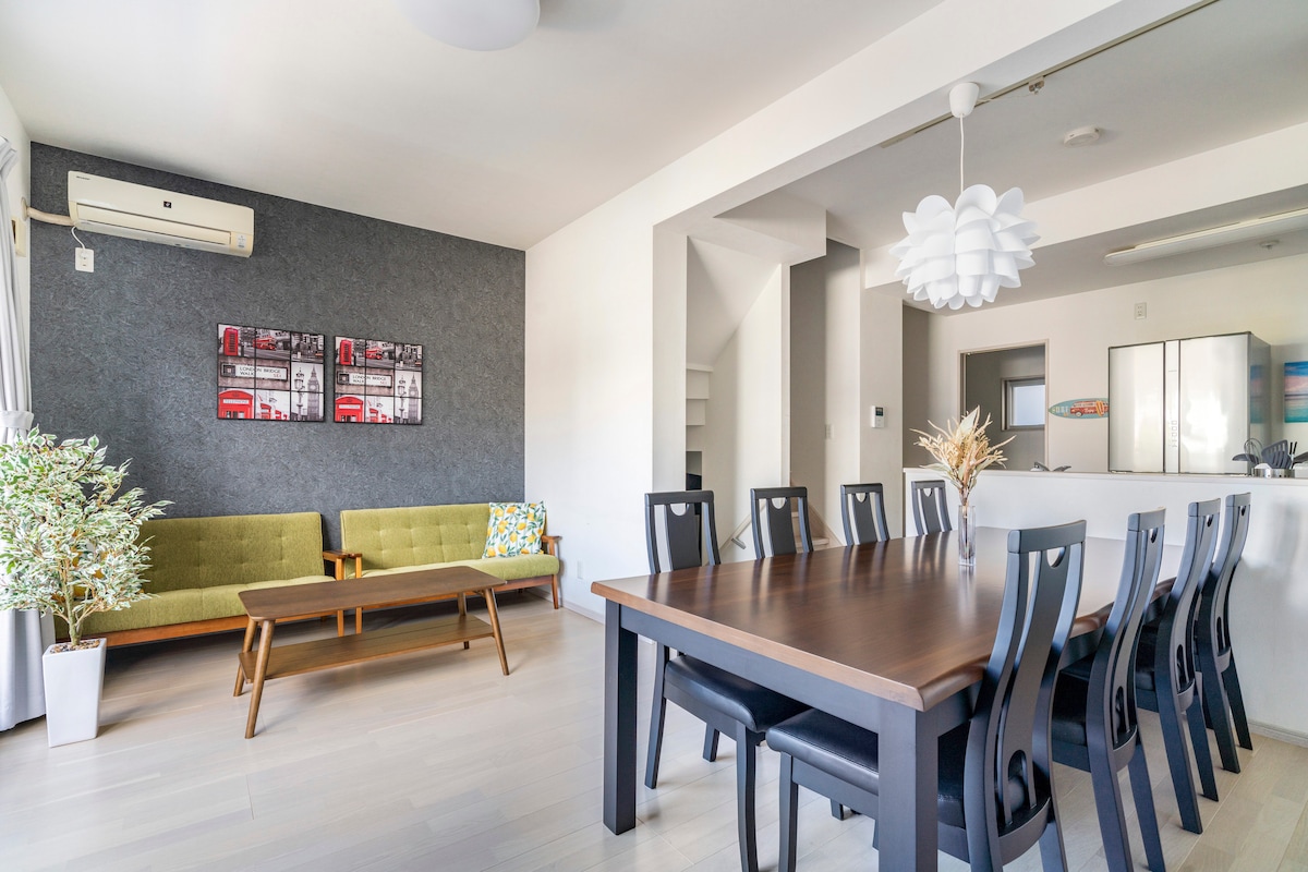 清潔でキレイ/車2台/4LDK115㎡/12名最大/高速Wi-Fi/120型/最短空港20分海10分