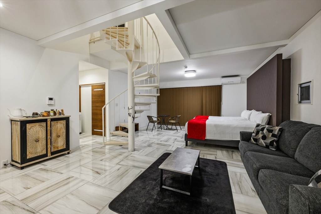 大人の街、沖縄市比屋根ホテル街に新しい隠れ家。 最上階の4Fを丸ごと貸切、完全プライベートのコンドミニアムです。 お子様に大人気ロフト付きのお部屋、乳児に安心の琉球畳和室もございます。オープンテラスにはLED付き贅沢なジャグジーを完備。夜もお楽しみいただけます。 オープンテラスでバーベキューも可能です。 バーベキューガスグリルは1日¥3000で貸し出しております。 晴れた日の早朝には太平洋から絶景の日の出に出逢えます。