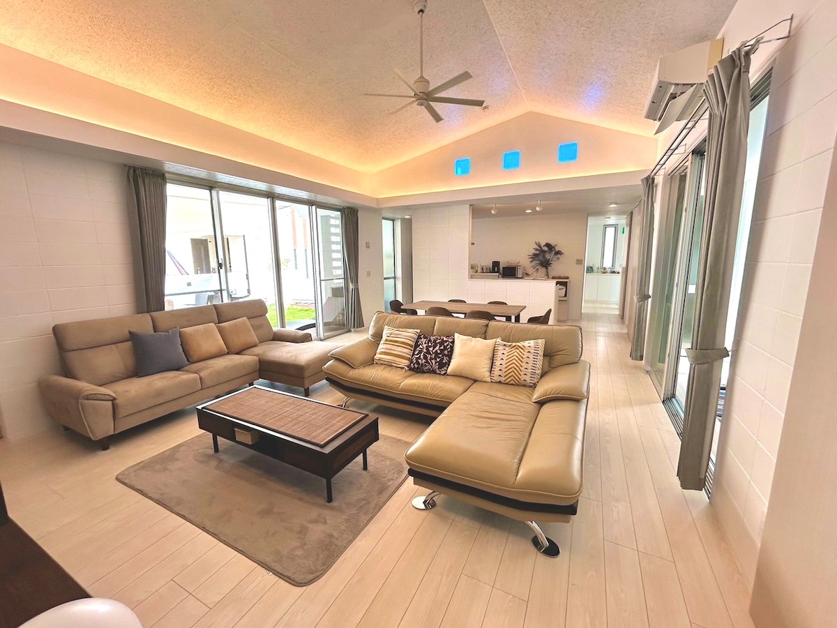 海洋疗愈屋位于冲绳恩纳村,是一栋“冬天也能欣赏海景”的独栋别墅 ⭐️ 荣获超级房东与 Guest Choice ✨全屋海景 ✨ 150㎡ 可容纳 8 人,4 个免费停车位 ,2 间浴室,适合家庭与团体入住 ⭐️ 冬季冲绳气候温和、景点人少,是安静度假的好季节 ⭐️ 挑高客厅、桌游 🎲、儿童秘密房等设施齐全,深受三代家庭喜爱。 距 Blue Cave 车程 5 分钟 🚗,步行可到咖啡馆与海滩 可在露台看夕阳 🌅、在室内享用火锅或料理 🍲、阅读或远程办公 ☕📚💻 欢迎在温暖舒适的空间度过冬日冲绳的惬意时光 ✨