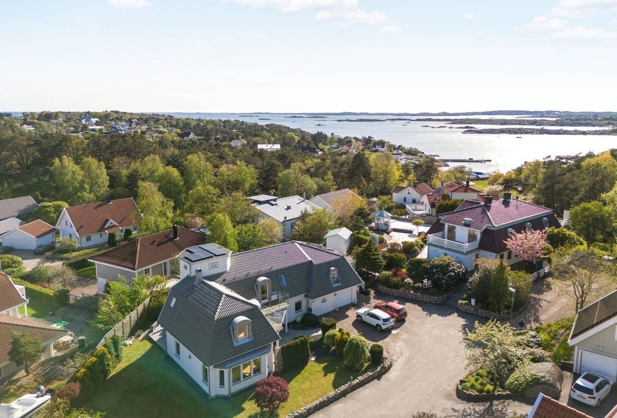 Mitt i naturen men bara 20 min från Göteborg hittar ni denna idyll. Här bor ni bekvämt i en nybyggd gäststuga med kamin, vedeldad bastu och badtunna. Runt hela huset går den stora altanen. Nedanför är en mysig stig (50 m) till den privata bryggan för ett morgondopp. Ta en tur med roddbåten och pröva fiskelyckan eller låna våra två SUPar. I direkt närhet finns vildmarken med gott om stigar, bl.a. Vildmarksleden, för vandring, löpning och mountainbike. Flygplats: 8 min Chalmers golfbana: 5 min