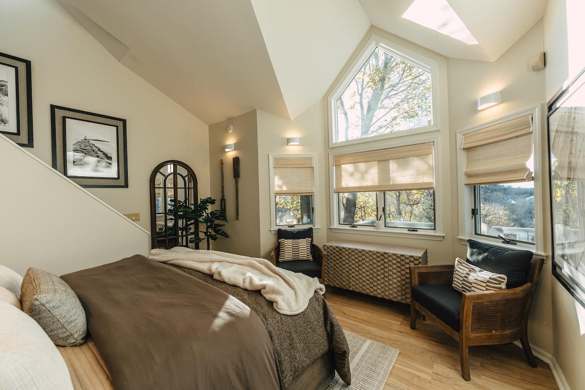 Take the chance to slow down & recharge in a unique 'modern meets historic' boathouse that sits perfectly on the water’s edge of tranquil Lake Vanderkamp. 2 bedrooms face the water so you can open your eyes in the morning and greet the day with stunning views. Enjoy your own dock and canoe. While at Vanderkamp you will share 850 acres of privately managed forest (with hiking trails and LOTS of amenities) with only a few other lodges. You won't want to leave this ultimate escape.
