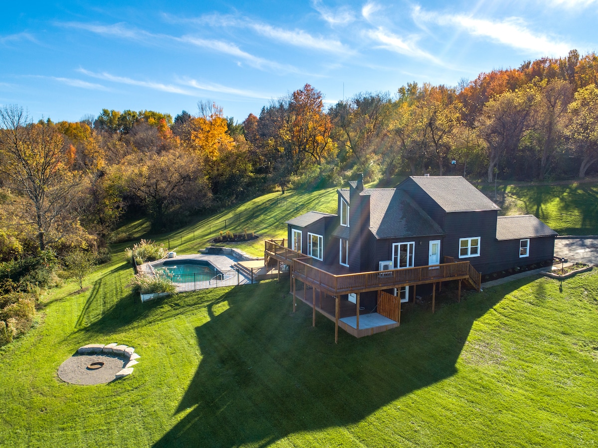 The Orchard Overlook is situated in the middle of our 1,000 acre apple orchard. This house truly has it all. Heated pool + new hot tub in addition to a gym, wood burning fire place, a fully renovated bathrooms and kitchen. This is the perfect house to stay at to enjoy everything the country has to offer. Escape from it all, relax and enjoy special time. Or catch a show, go apple picking or enjoy a tasting at Apple Hill. The #1 apple orchard in the country is 3 minutes away!