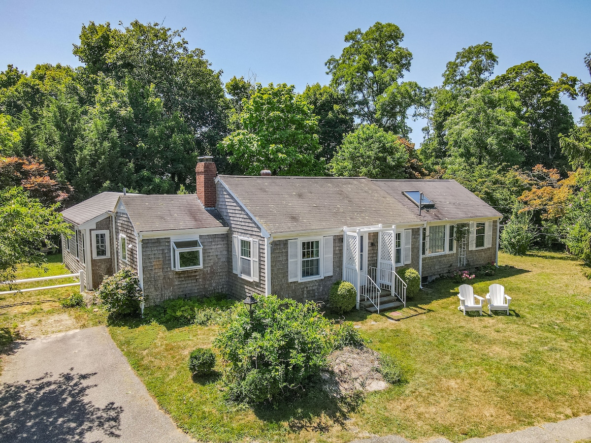 Contemporary cottage on quiet, private, wooded lot. Pristine, bright & comfortably furnished. Open living area, hardwood floors, vaulted ceilings, indoor/outdoor fireplaces, well appointed kitchen, washer/dryer, cable/internet/phone with unlimited national calling, SmartTV with Netflix and additional internet streaming services. Walk or bike to beaches and trails, 5 minute drive from downtown shops and restaurants. Property abuts West Chop Woods with lovely, quiet walking trails.