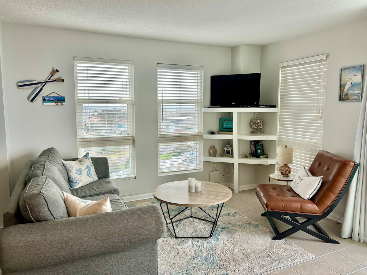Come experience oceanfront luxury at a family-friendly price! Our top-floor condo offers breathtaking views of the sparkling Atlantic Ocean, the Chadwick Bay, and surrounding marshlands. The spacious 1 bed/2 bath layout with hallway bunks and a living room sleeper sofa comfortably sleeps up to four adults and two children. All guests receive access to the St. Regis Resort, which is unique to Topsail Island. Please note that the building adjacent to us is undergoing construction fall/winter ‘25