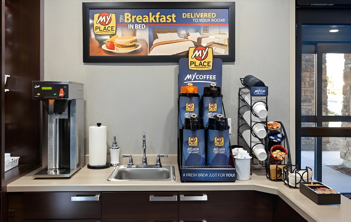 Enjoy Full Kitchen Amenities in Pet-Friendly Room