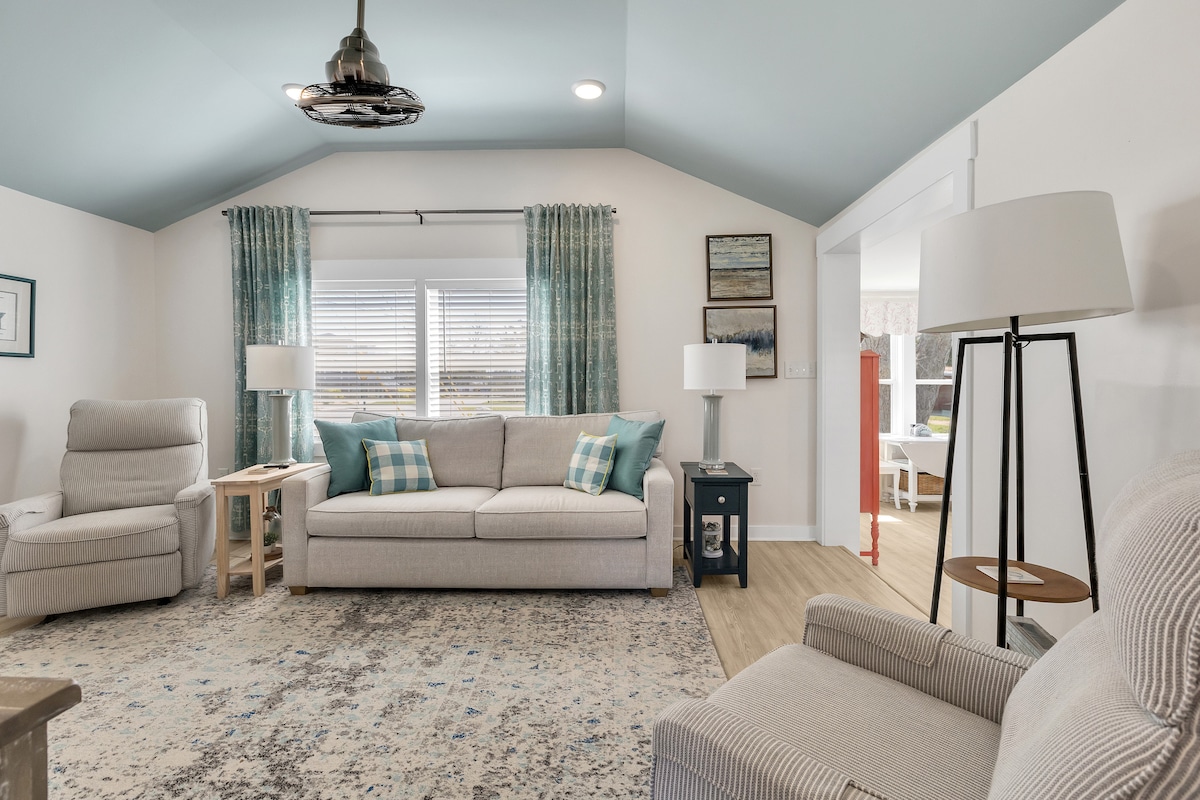 Virginia’s Country Cottage, a charming guest house constructed in 2020, nestled on 40 acres behind our residence. Enjoy your own private yard and relax on the new outdoor patio featuring a gas fire pit. This 950-square-foot retreat offers tranquility in a secluded setting while still being close to Western Blvd. Nearby amenities include restaurants, grocery stores, a movie theater, mall, and Walmart, making it an ideal spot for those visiting cities surrounding onslow county.