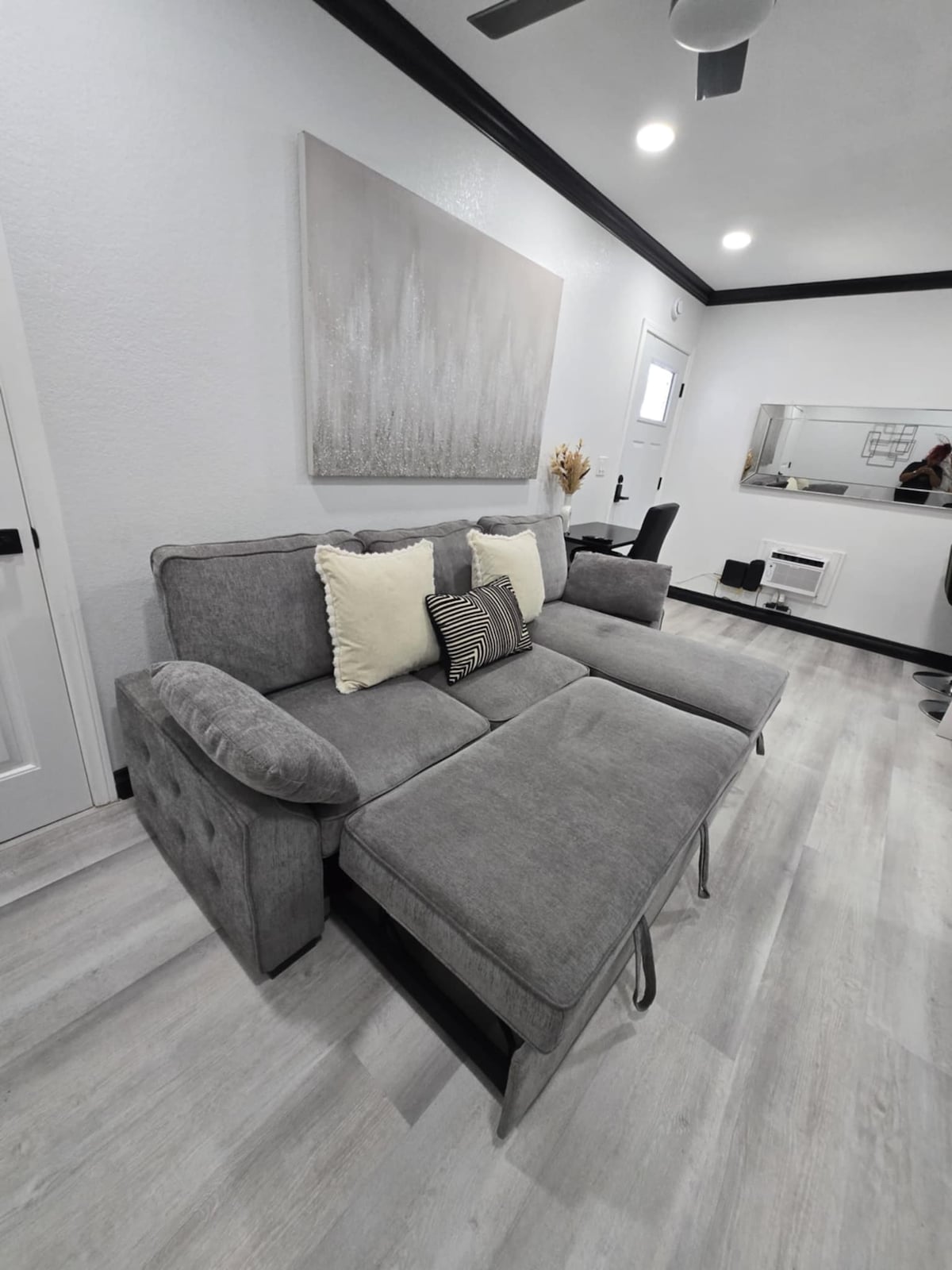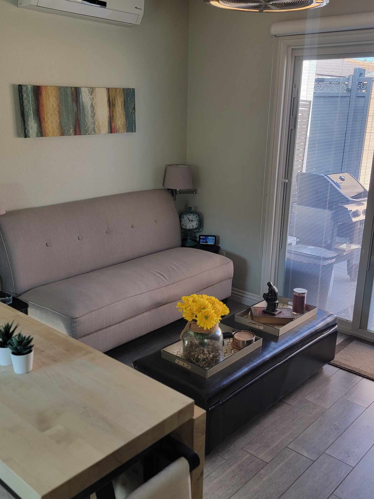 This stylish studio is located in a family-friendly neighborhood and is centrally located to Ontario airport & Convention Center, numerous hospitals & shopping malls, and about an hour away from the mountains, beach, and LA. This studio is equipped with everything you would need! There is a small kitchenette, including a Keurig, hot plate, microwave, and mini fridge. There is a small patio area to enjoy the outdoors, or TV to watch your favorite shows. You are sure to have a relaxing stay here!