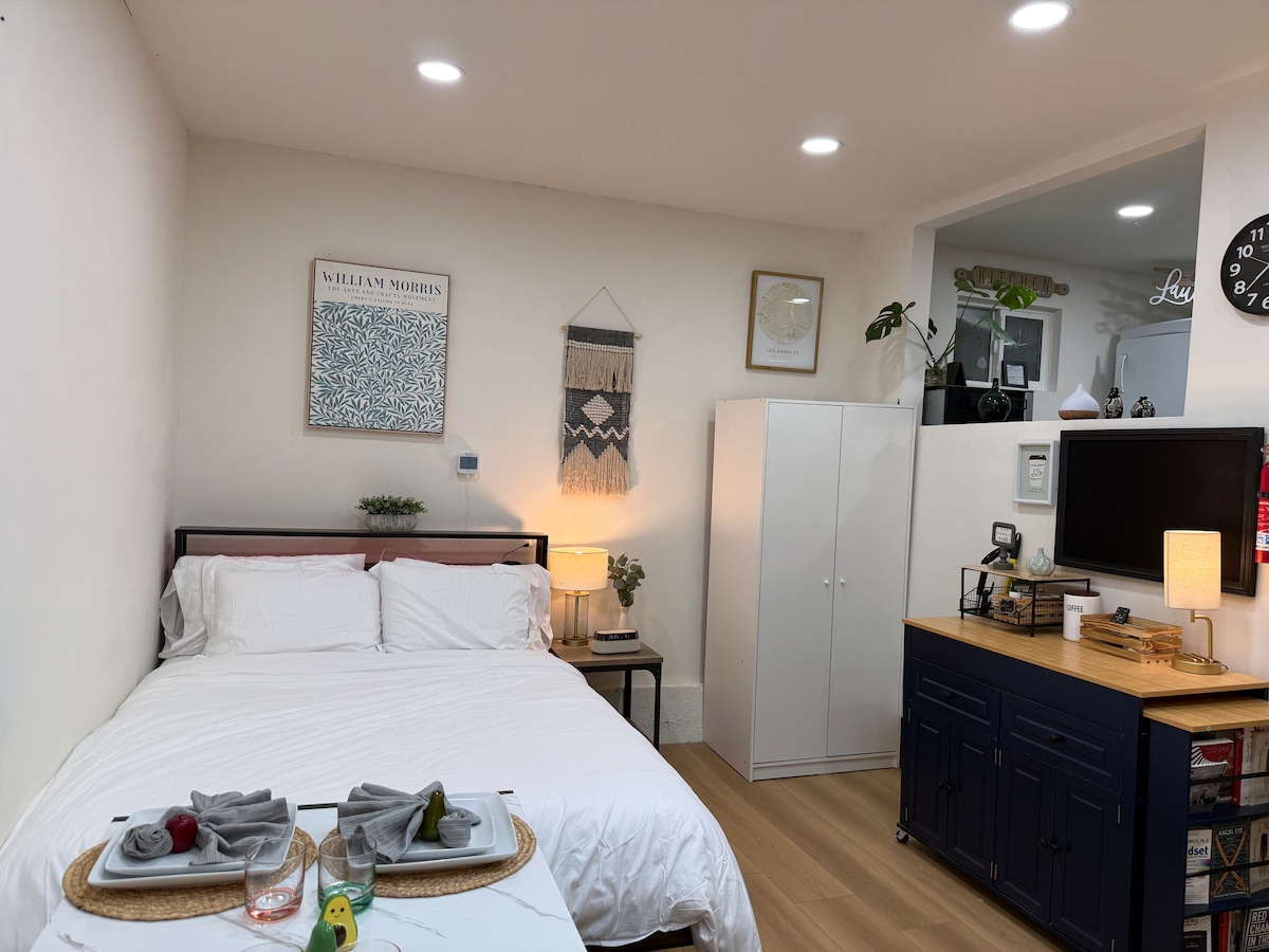 Welcome to your private, cozy retreat in a quiet and secure Ontario, CA neighborhood. Enjoy a fully self-contained stay with: • Seamless keyless entry • AC & heating • Plush queen bed + queen air mattress • Spa-rainfall shower • Smart TV with Netflix • High-speed Wi-Fi • Complimentary snacks, coffee, tea & filtered water • Outdoor patio seating • Discreet security cameras • Minut noise monitor enhanced CDC and Airbnb cleaning & sterilization.