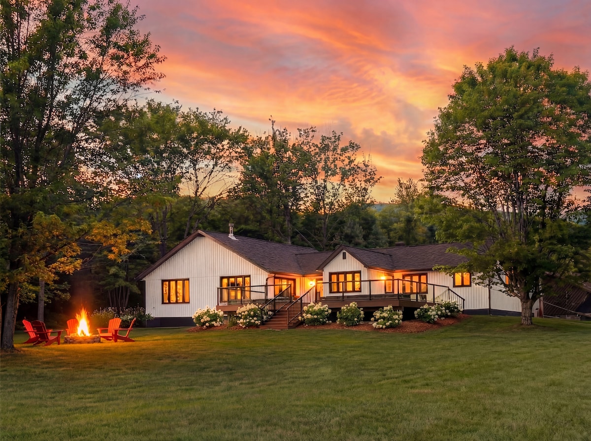 This open space home is in the top level of a century-old bank barn. Witness the beautiful architecture while enjoying modern amenities like an open-concept kitchen, projector & movie lounge, and more! Enjoy 180 degree views from the bay window in the living room during your stay. Five Star Ranch offers a year-round getaway in a beautiful country setting. Situated on a working farm, and surrounded by gardens, animals and beautiful forest, it is a perfect destination for seclusion and peace.