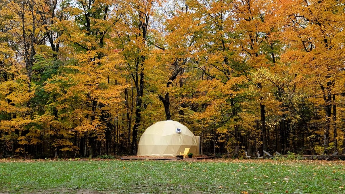 Visit our Airbnb profile to see the listings of our 6 private domes :) Welcome to Gîte l'Évasion! Experience sleeping under the stars in the comfort of a queen bed, in the wonderful Lake Superior region. ✲ 25 minutes to Tremblant ✲ Private 4-season spa ✲ Indoor Gas Fireplace ✲ Fire pit ✲ Private terrace with BBQ ✲ Footpath ✲ Private shower ✲ Full kitchen ✲ AC ✲ Included: Bedding, towels, sanitary and food essentials