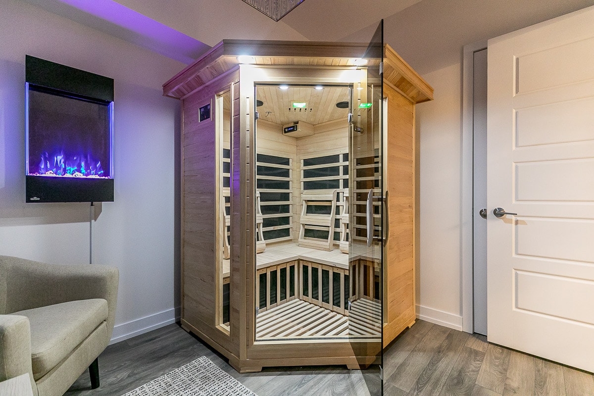 Welcome to the most unique suite at Friday Harbour Resort! Relax, refresh and unwind in your very own private spa experience which includes large infrared sauna, 3 indoor fireplaces and outdoor fire table. Kiss those winter blues away while you warm up in the most cozy suite, perfect for a romantic getaway. Every stay includes a bottle of bubbly to toast with the one who is most important to you! Make Fire & Ice your next vacation destination and reconnect in a most romantic, relaxing suite!