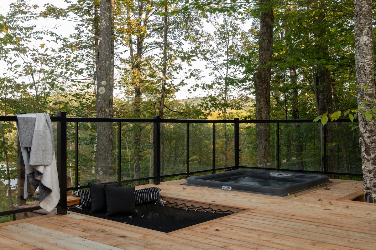 Aux abords d'un lac, le Parc de la Gatineau est un superbe chalet en A parfait pour se déconnecter de la ville tout en étant idéalement situé pour vous permettre de bien profiter de tout ce que la région touristique de Gatineau/Ottawa a à offrir. Nos mini-chalets sont équipés pour vous permettre de relaxer avec leur spa ou d'effectuer du télétravail dans leur bureau aménagé à cet effet. Nos chalets seront un endroit où vous vous presserez de revenir puisque vous y sentirez comme chez vous.