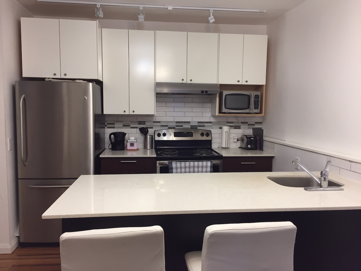 Our Guest House (690 sq. ft.) with 12 foot ceilings is filled with all the conveniences. Imagine being able to walk to the historic downtown shopping square, restaurants, Lake Huron, concert venues, ... Your retreat has WiFi, TV, kitchen (Air Fryer, Toaster Oven), French Press for coffee. RADIANT HEATING ON FLOOR, air conditioning, ceiling fan, comfortable workspace (round table) and free parking. You have your own outside patio, and Private Keypad entrance.