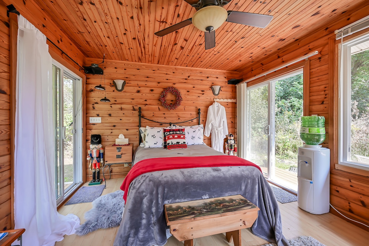 Cabin at the edge of the woods at The Mulberry House on the Grand. from May to Oct 1 only. Experience glamping in The Mayors Cabin. Perfect for 2 with private firepit, outdoor dining and indoor full washroom facility in the main house. Enjoy: spa, pool , watch the fireflies at night and in the morning enjoy the 5 star 4 course breakfast. Please note there is no hydro running water or heat. Solar lights only. Port a potty next to cabin. True Glamping. 19+ only.