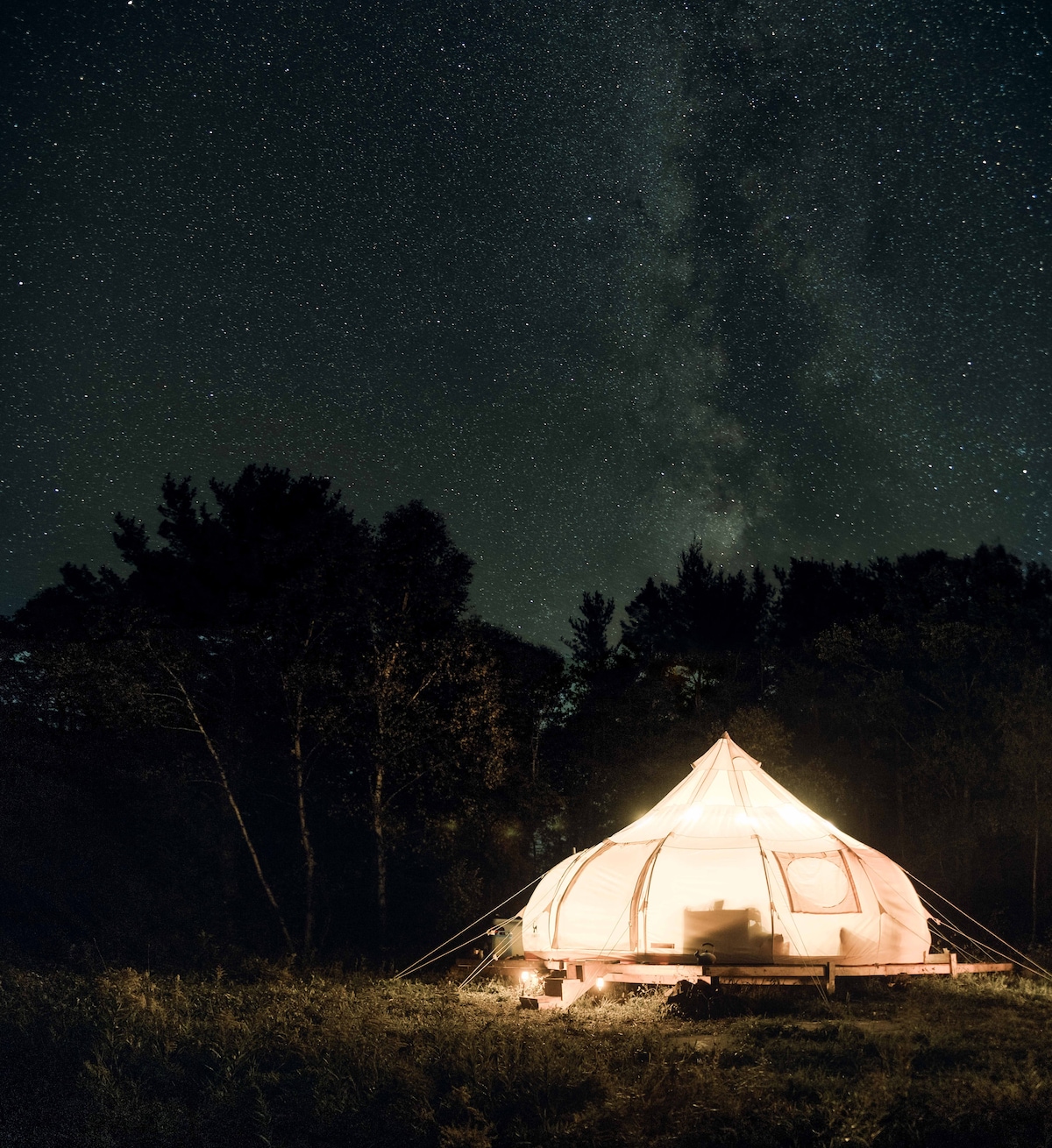 Get away and stay under the stars. In your private Glamping Tent. Enjoy a shared woodfired sauna and hot tub, followed by cold plunge. Only 45 minutes north of Toronto we offer a respite from the hustle and bustle. As the night falls, gather around a crackling, fire pit, swapping stories and laughter under the starry sky. When culinary inspiration strikes, a shared kitchen is at your disposal, providing all the necessary tools to craft a delightful meal to savour under the open sky.